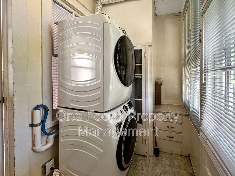 Spacious and well-lit living room. Eat-in kitchen. Full bathroom with a tub and a shower. Rear mudroom/laundry room with a washer and dryer.