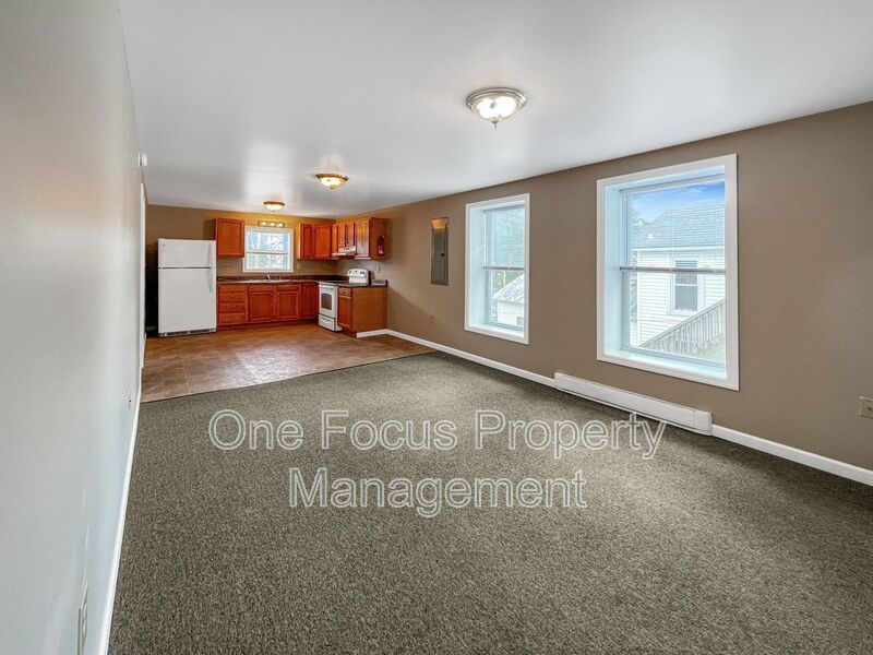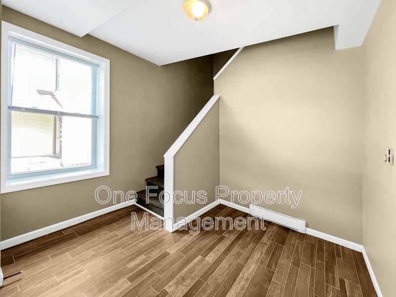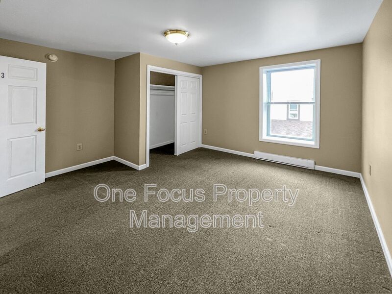 The apartment is very spacious, and each bedroom can accommodate a queen-sized bed plus a dresser. The entryway going up to the apartment will make a great mud area that can fit a rack to hold your shoes and coats. There is also unassigned off-street parking in the rear of the property, making parking a breeze.