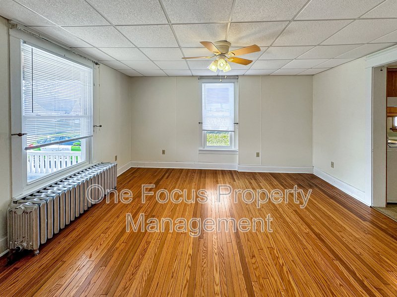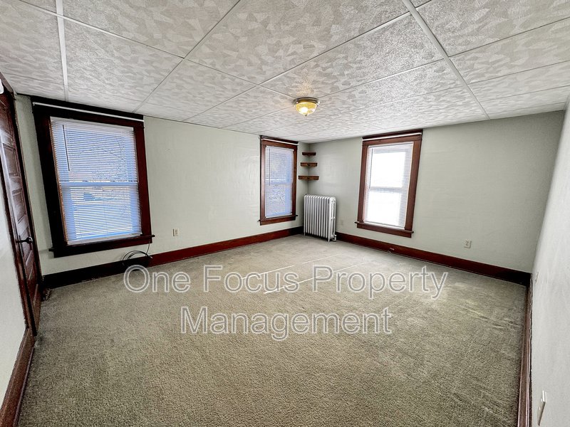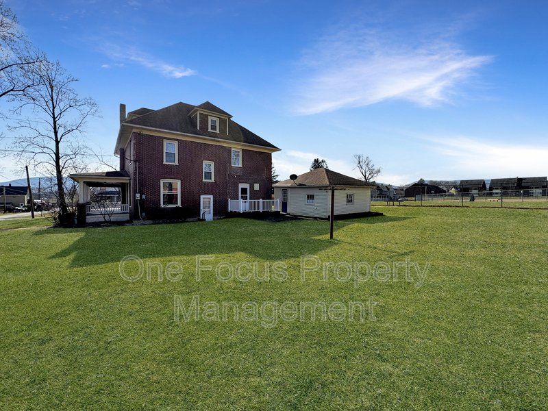 Exquisite single-family farmhouse with captivating features. The first floor boasts a cozy living room complemented by a charming decorative fireplace, a seamless flow from the dining room leading to the well-appointed kitchen, a versatile bonus room with porch access, a convenient half bathroom, and tasteful built-ins in the foyer. The kitchen is a culinary haven with ample counter space, abundant cabinets, a breakfast bar, and easy access to the backyard, and basement. In the basement, you will find the laundry connections ready for you to bring your electric dryer and washer. All of the bedrooms offer generous space for queen beds and dressers, complete with ample closet space for storage. The largest bedroom accommodates a king bed and dresser and features a delightful ensuite half bathroom. The full bathroom on this level is equipped with a linen closet, a bathtub, and a shower for added convenience. Outdoor spaces are equally enchanting, featuring a sprawling wrap-around porch that exudes charm and a quaint stone patio nestled in the backyard, providing a perfect retreat. You also have ample parking in the driveway, and the garage will be available for use by the summer as soon as the property owner has it ready for your access. You will note property markers so the definition of the backyard is very clear. The fire pit on the far side of the lot, and the red garage are not for resident use.